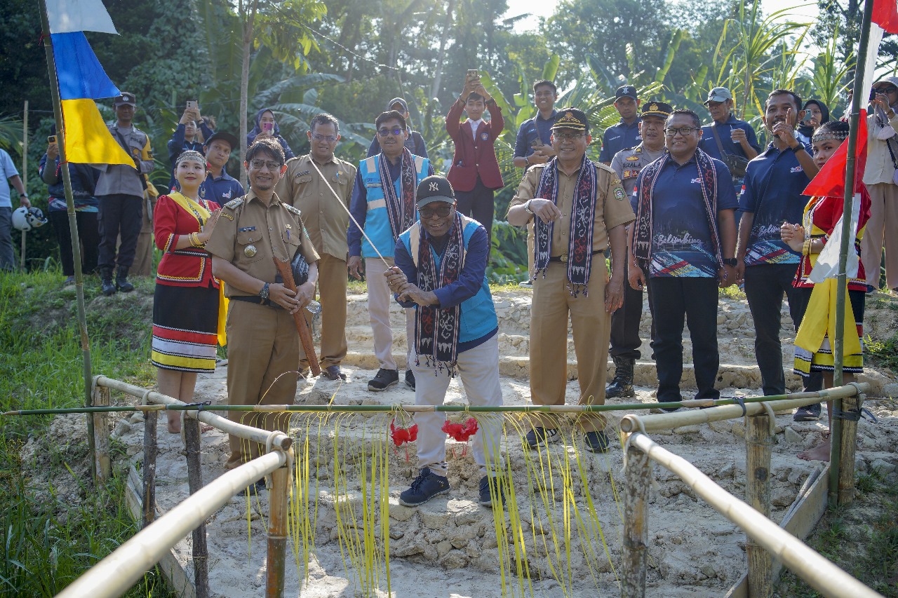 | SRM Distribusi UID Kalbar, Salmon Kareth melakukan pemotongan bambu sebagai simbol peresmian penyerahan bantuan Program Tanggung Jawab Sosial dan Lingkungan (TJSL) PLN UID Kalbar di Desa Wisata Batu Belimbing.(FOTO/DOK/PLN) |